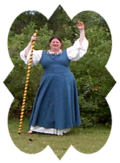 Elen was 4th Person, with date of January 23, 1972, to receive an AOA from the Kingdom of the Middle, 18 nondated people are listed above her in Midrealm Order of Precedence for the AoA. Although others have higher honors, none are senior, so she is listed "out of order.")