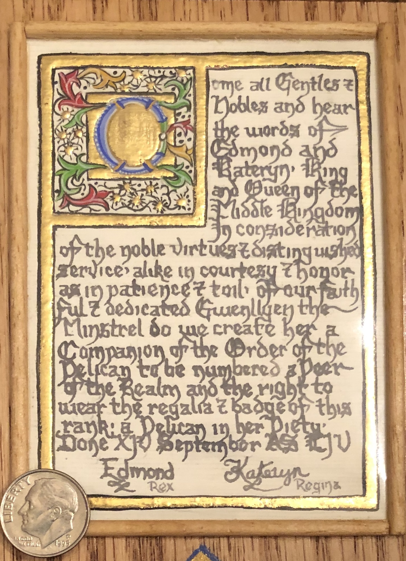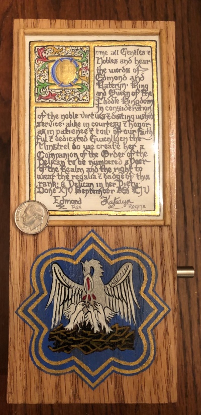 14, 2019, Gwenllyen the Minstrel was elevated to the rank of Pelican in
