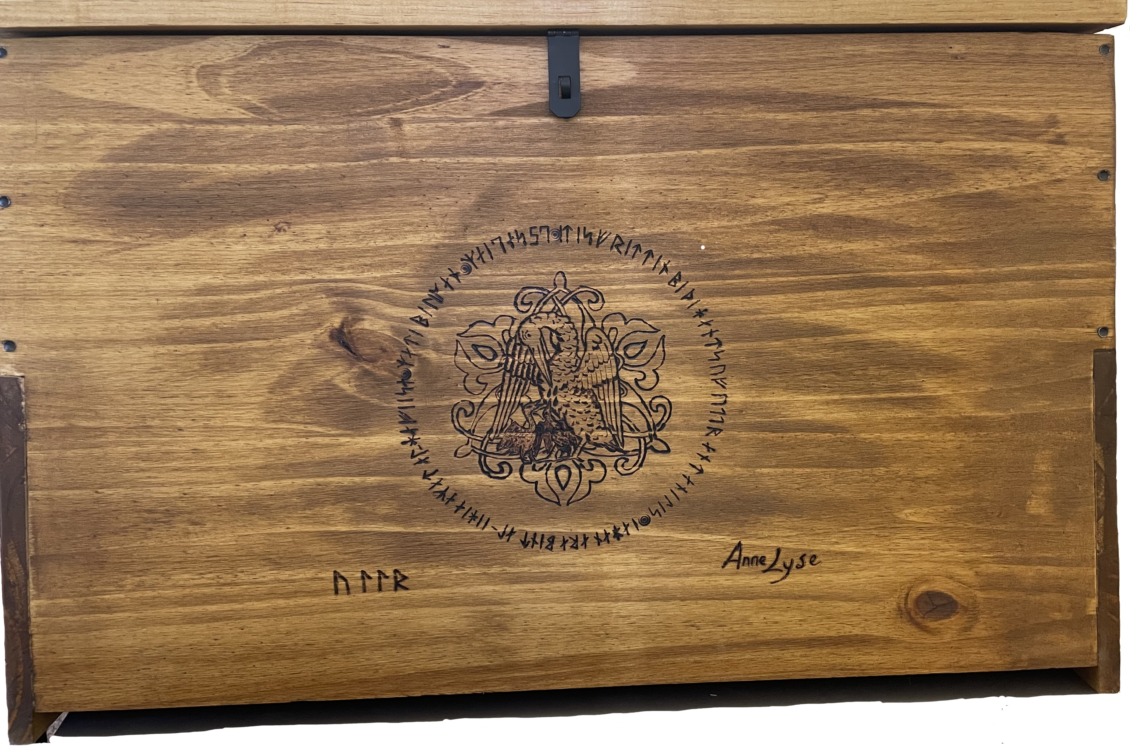Close up of front - It is written by the Hand of Ullr and AnneLyse Jahan Ara bint al-Yehya amat al-Hafeeza made Pelican May 7, AS 57