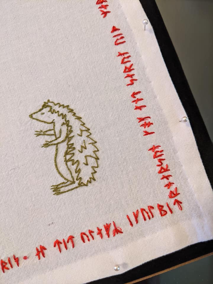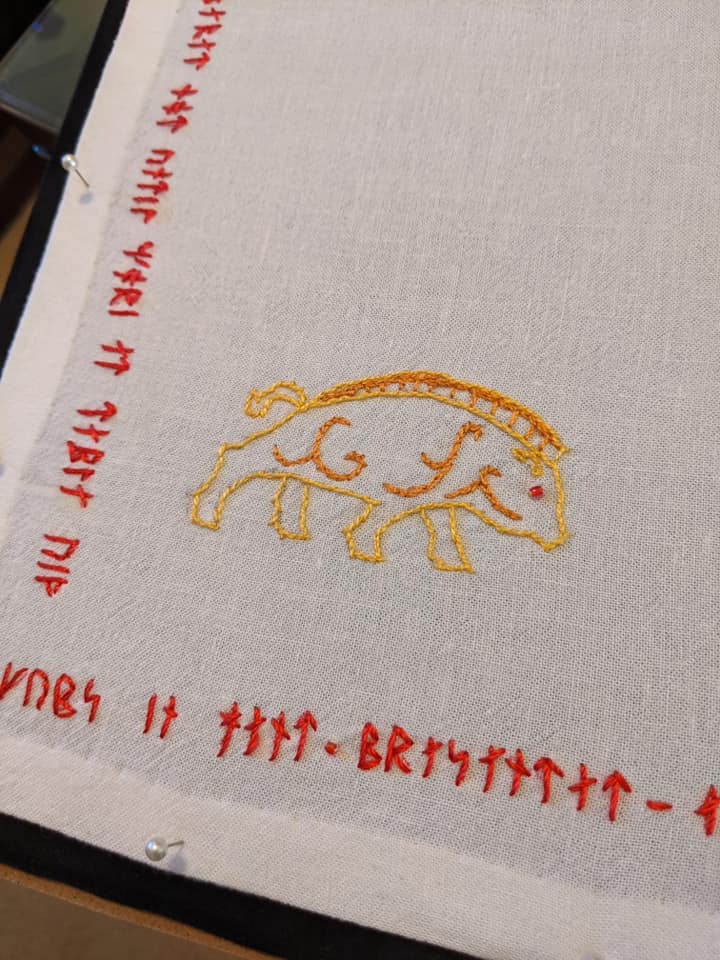 Close up of Óláfr heraldry Badger
