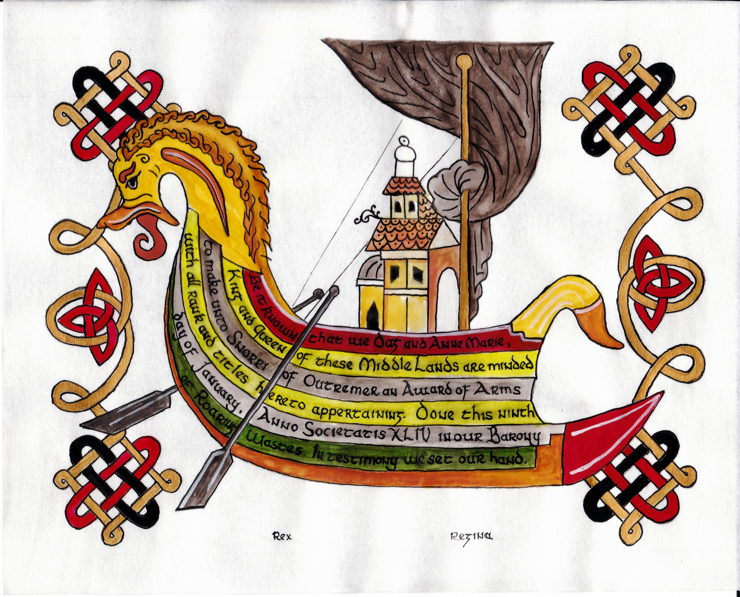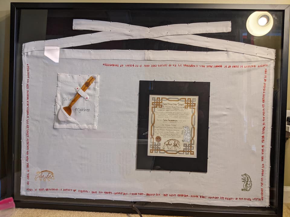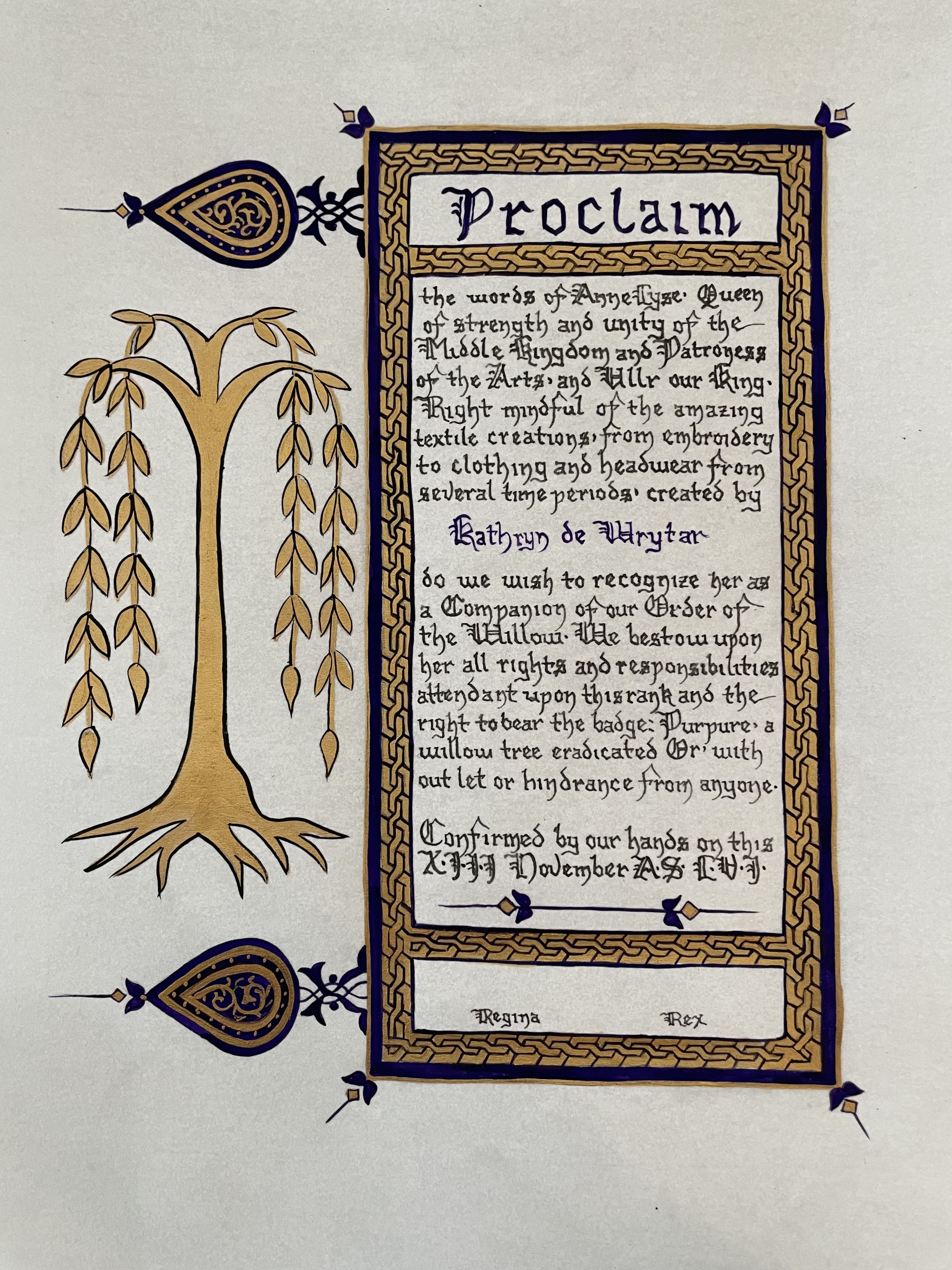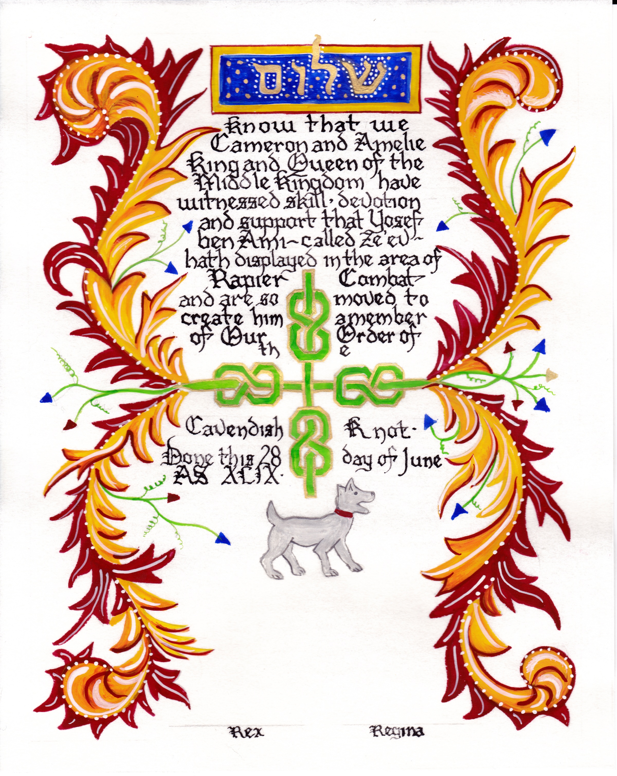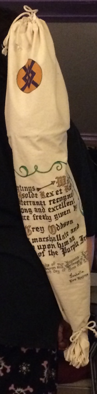 To see all of her scrolls in the order they were created, her blank scrolls for "battle scribing", and her additional A & S projects - visit Aliyah's Online Portfolio of the Arts & Sciences.