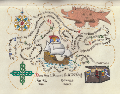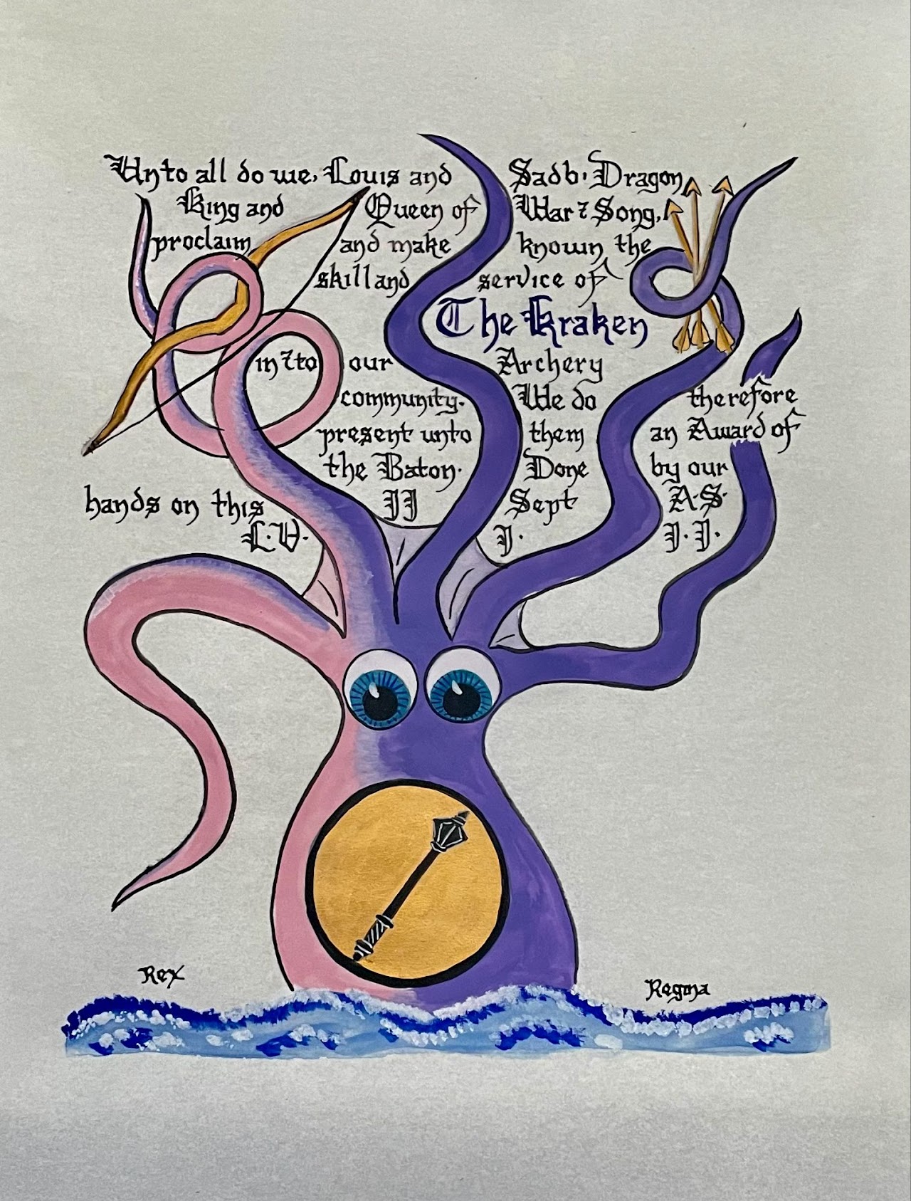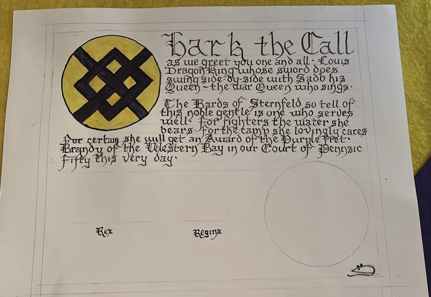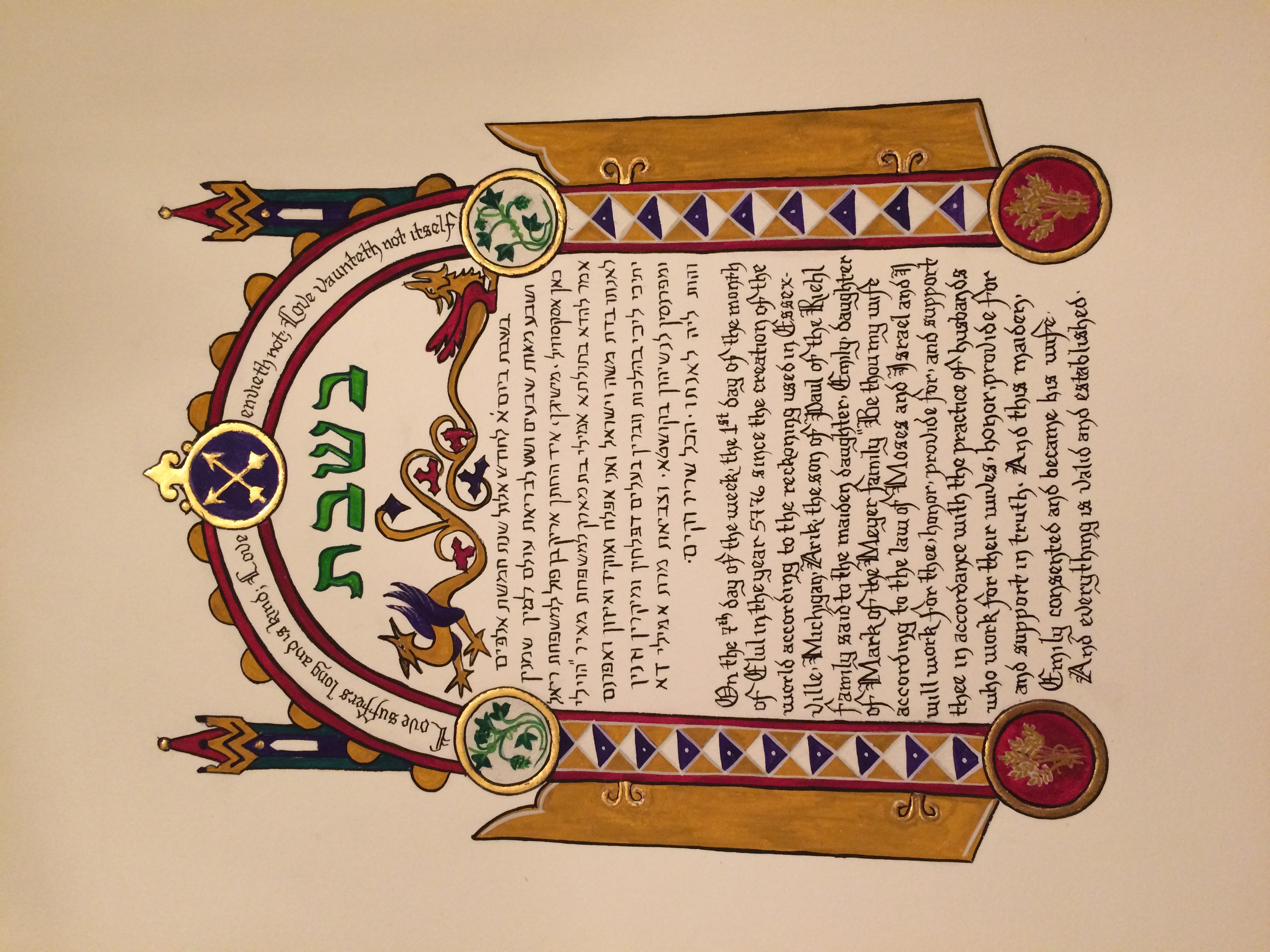To see all of her scrolls in the order they were created, her blank scrolls for "battle scribing", and her additional A & S projects - visit Aliyah's Online Portfolio of the Arts & Sciences.