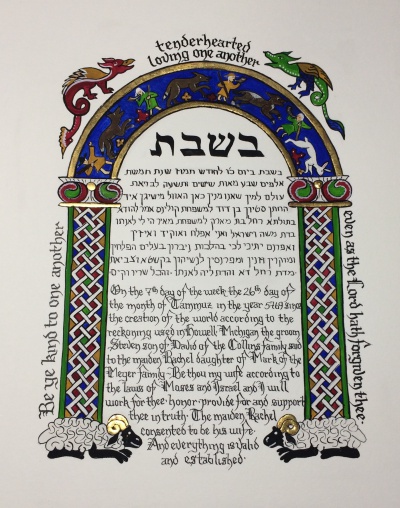 It is the Psalter and Book of Hours, copies of the Bible, Haggadahs and marriage contracts that give us our best examples of Illumination today. Those from the 1300s and later are what have survived today, as parchment, vellum and paper do not keep well. Only items of great personal value would be taken care of in a manner to preserve them, and these items are in that realm of importance. Marriage contracts are great examples as they reflect the period and area they were written in illumination style. There are surviving examples of these found back to 500 B.C. There are many non-sacred illuminated manuscripts dating from later time periods as these survived the ravages of time. An example I have seen is a textbook for doctors showing which herbs to use for different ailments when leeching does not work (the medieval equivalent of take two aspirin and call me in the morning.)