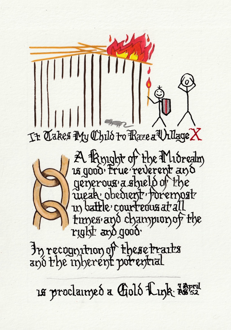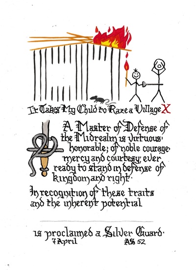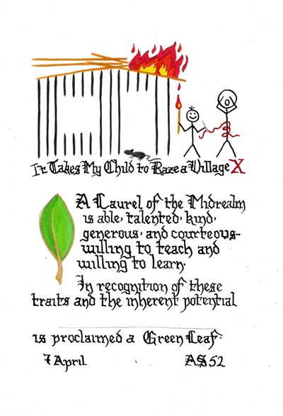 Done by Baroness Alianor bat Asriel (known as Lady Aliyah) and Rachel of Wealdlake