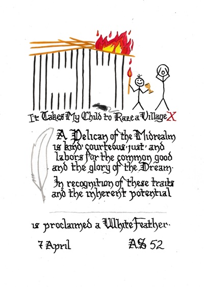 It Takes MY Child To Raze A Village 2018 award scrolls