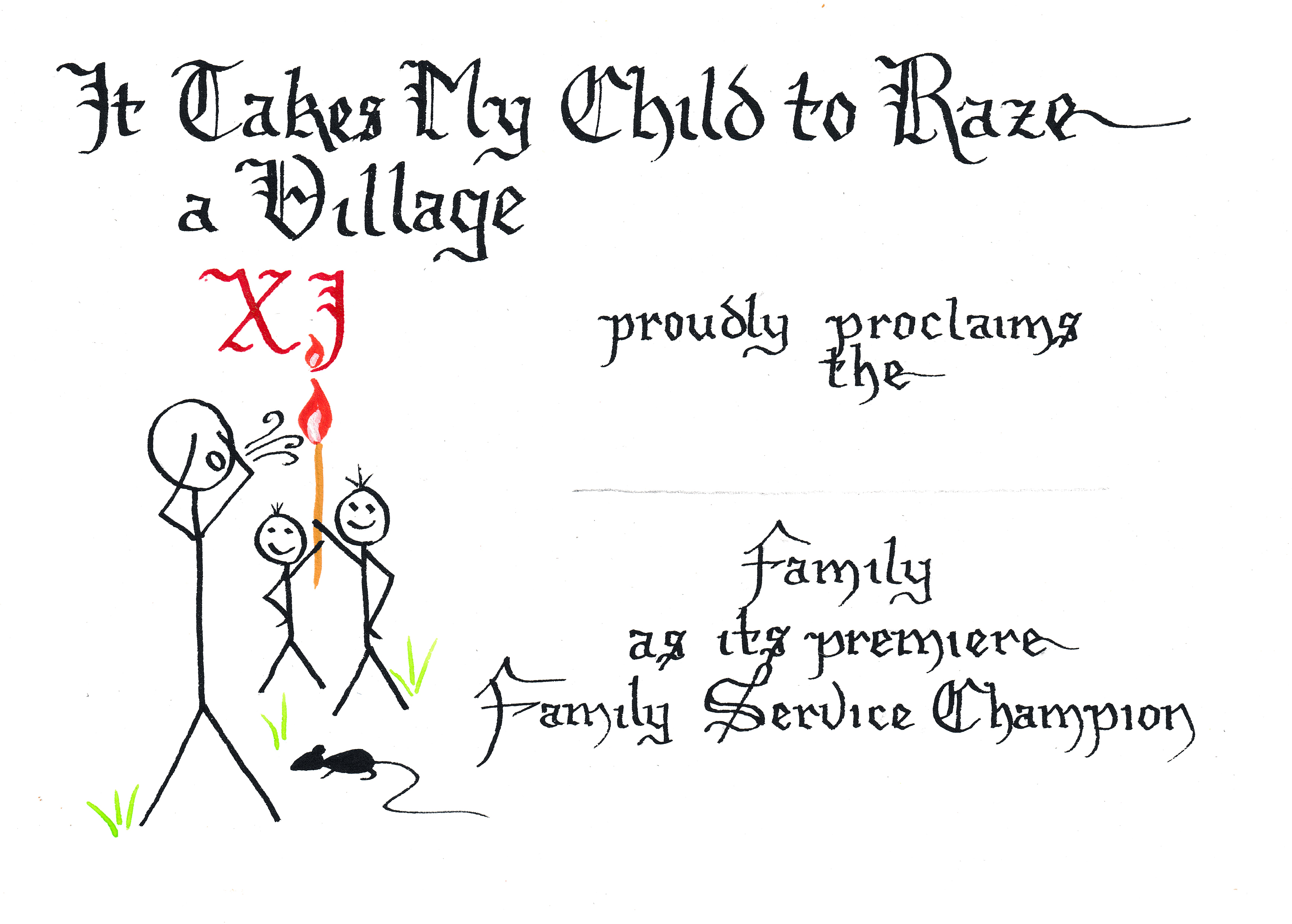It Takes MY Child To Raze A Village 2019 award scrolls