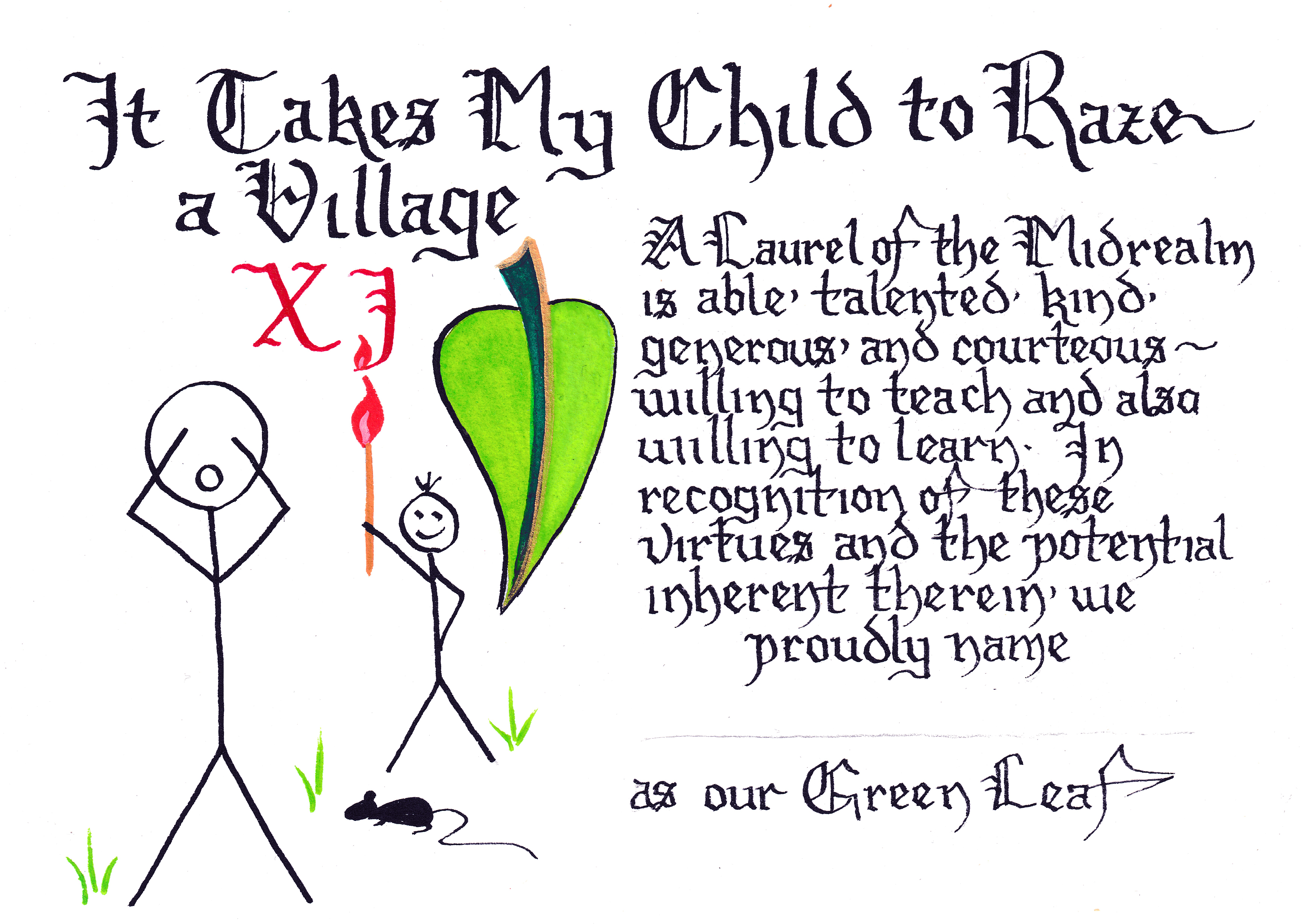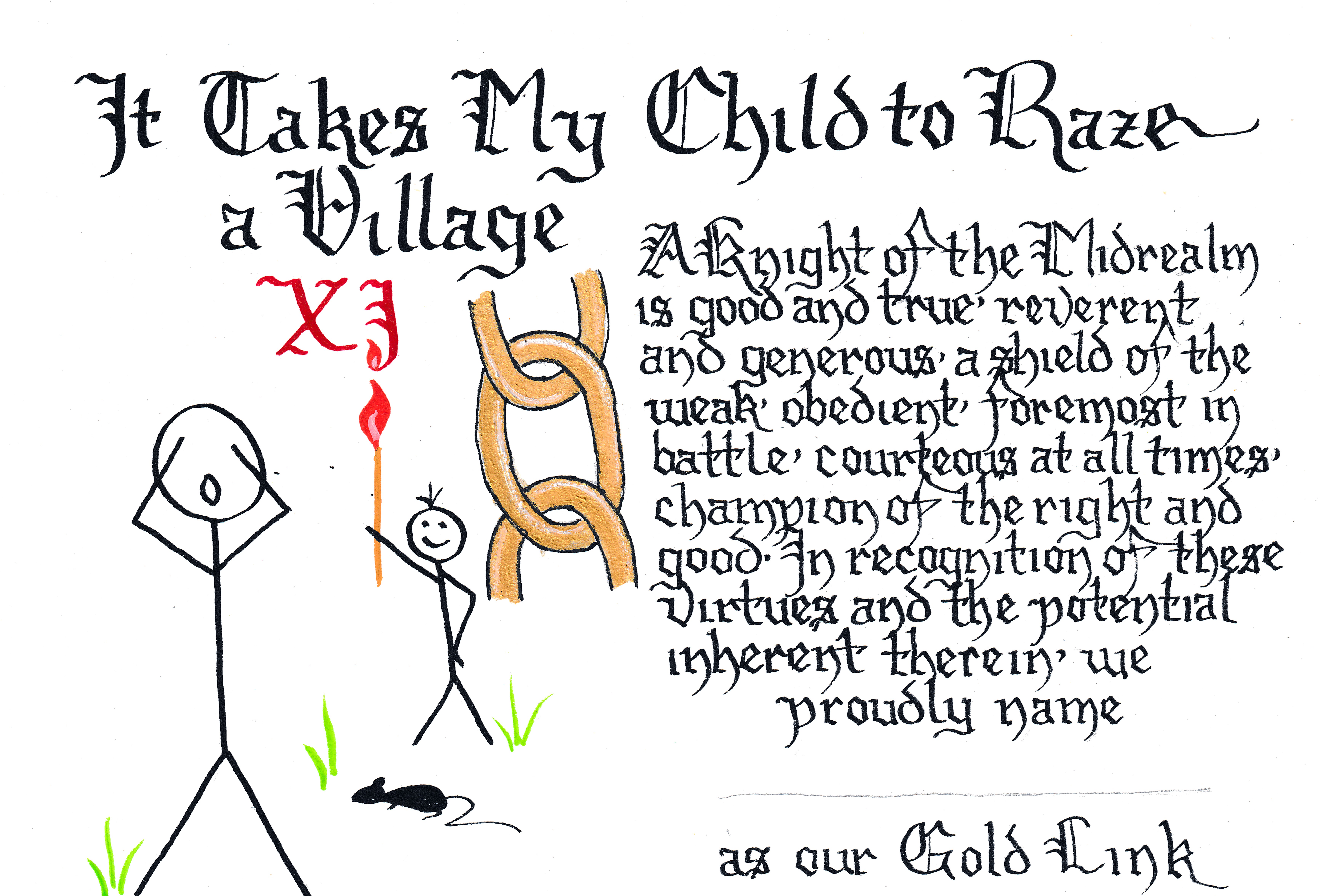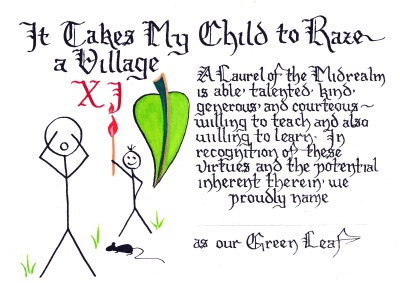 Done by Baroness Alianor bat Asriel (known as Lady Aliyah)