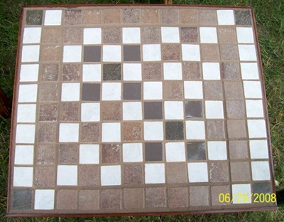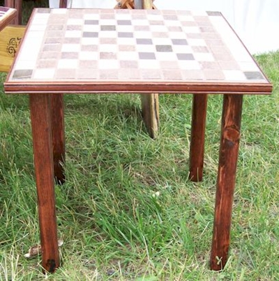 An X-chair takes around 32 hours, not counting drying time for poly, to make by hand. The benches of walnut and oak, 8 hours each, the cottage table, 12 hours, the castle table, 12 hours - all not including drying times for stain and poly, or about a week per piece with drying overnight between coats. The small boxes take an hour to cut and assemble, the designs can take over an hour to put on. These are not quick projects when using medieval methods, so all Banded Tree™ items are 'gifted' (although some are commissioned for 'gifting' to the person commissioning the project.) However, a project may be commissioned only if the artisans of Banded Tree™ are willing to take on the project. There have been a few items made for sale at the Medieval Village at thebrequest of the guests of the village. These vary in kind and are limited in production. The latest were the gaming tables shown below. For those willing to take on the challenge, the reference links and books are included below so you too can build your own "medieval" furniture.