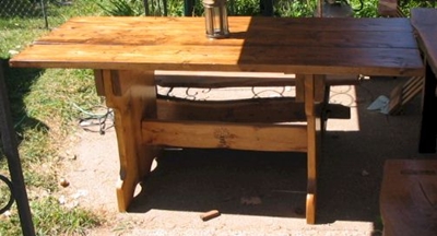 The cottage table I made with oak legs and framing, with a natural walnut top. This also is pegged together so it breaks down for travel. My wife named it a cottage table as it is a 4 foot by 3 foot tabletop - just what you would have in the cottage kitchen.
