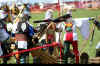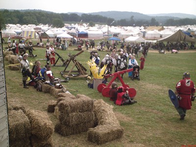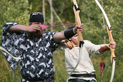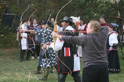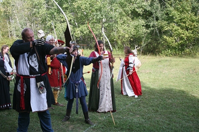 Target archery and Thrown Weapons are used for populace battle points in many of the "wars", as well as for fun by the participants. Archery shoots can be as simple as lining up and shooting at a target with the highest score being the winner, to various novelty shoots. A very short list of novelties includes storming the castle, defending the castle, tower shoots, War of the Roses, duck-goose!, friend-foe, berserker, York, modified York. The archery link below can bring you to links with these and other shoots listed in greater detail.