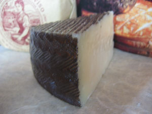 looking much like a small Parmesan wheel. The natural rind is dark brown, hard,