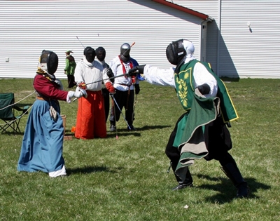 At many venues, we have had Adult fencing or rapier demonstrated. At most SCA events, fencing for both youth and adults is available for authorized fighters to test your skill against the other fencers of the realm. A new style starting to take hold for adults is Cut and Thrust. The regulations for equipment may vary from Kingdom to Kingdom as allowed by Society Rules. However, the one rule that is always applied - Safety First!